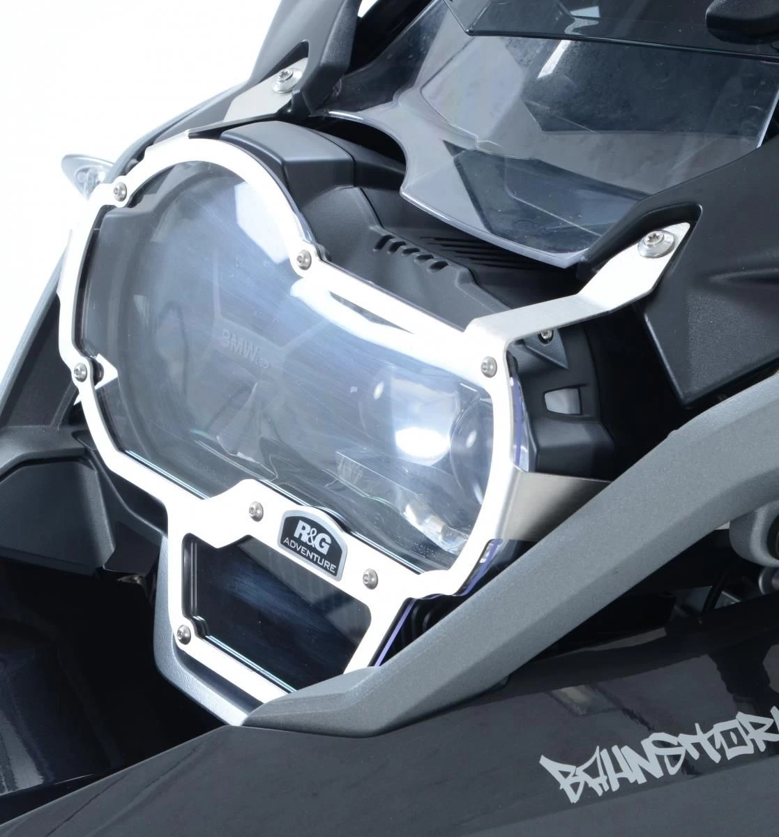 Extra bescherming voor de koplamp tegen bijvoorbeeld opspattende stenen. Gemaakt van roestvrij staal en op maat gemaakt. Het lensschild is gemaakt van sterk 2 millimeter dik polycarbonaat waardoor de lichtopbrengst van de koplamp niet minder wordt. De R&G koplamp beschermer wordt ook Headlight Guard genoemd.