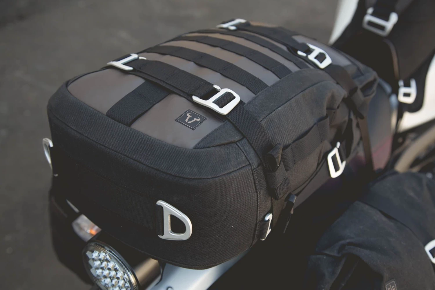 - Tie-down straps zorgen ervoor dat de tas eenvoudig gemonteerd kan worden op nagenoeg alle motorfietszadels.