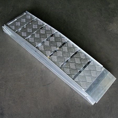 Een sterke opvouwbare aluminium oprij plaat. Goed geschikt om te gebruiken als de motor bijvoorbeeld op een bus of aanhanger gereden moet worden.